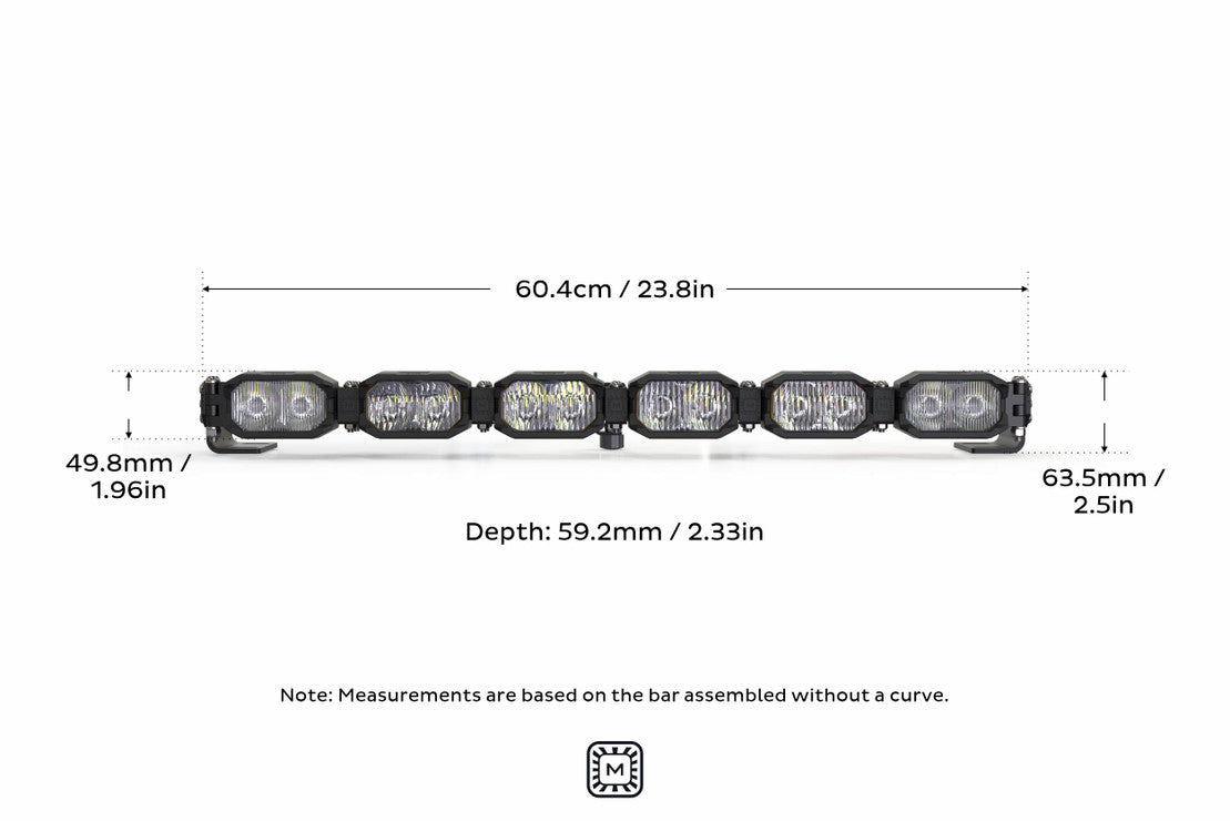 OFF-ROAD REINVENTED: Since 2008, Morimoto has been building the best lighting upgrades for the automotive aftermarket... consistently turning out products packed with more performance, reliability, and best in-class fitment & style. The Single row BangerBar continues that tradition as a bespoke light bar, where you spec the power. You spec the color. You spec the length. You set the radius. And then you destroy the darkness. Every bar is pre-spec'd with the 2Banger Pods, the inner links, a set of universal end-mounts, and all the hardware necessary to assemble.