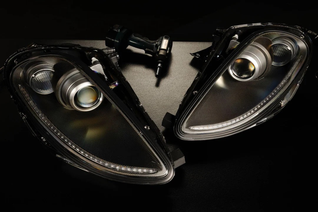 Enhanced Light Output: Performance has been dramatically improved over the stock Ferrari F430 headlight system. Replacing the original Valeo units are upgraded G5 Bi-xenon projectors in the low beam position and a powerful dedicated high beam—delivering up to 300% more light output than the factory HID setup. The beam pattern is cleaner, brighter, and more focused, offering a real-world performance advantage for night driving.